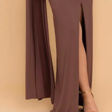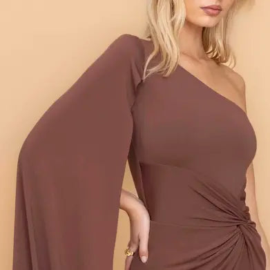 Schweben Sie durch den Abend mit BRAX, unserem Maxikleid mit Cape-Ärmeln. Geformt aus üppigem Dunkelbraun MaxikleidDer Ausschnitt wird durch ein asymmetrisches Design definiert. Eine Schulter ist entblößt, die andere wird durch einen Cape-Ärmel belastet, der sich nach unten ergießt, bis er den Boden berührt. Der Schlitz des Rocks ist nicht schüchtern und reicht in einem einzigen entscheidenden Schnitt über das Knie, während das Knotendetail an der Hüfte für einen zusätzlichen Hauch von Verführung sorgt. A Kleid Mit scharfen Kontrasten bringt der BRAX die ganze elegante Dramatik mit sich.