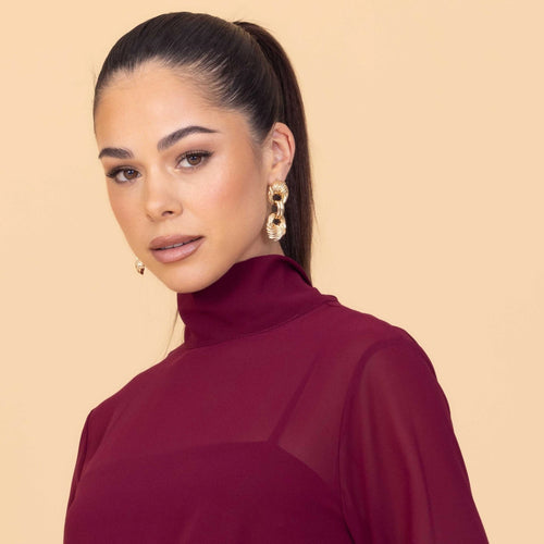 Treten Sie ein in mühelosen Glamour mit dem FELICITY Wine Mini Dress, einer wunderschön femininen Silhouette, die bei jedem besonderen Anlass Eindruck macht. Der kräftige Weinton unterstreicht die romantische Ausstrahlung dieses fließenden Chiffonkleides und der fließende Stoff sorgt für Komfort von Tag bis Nacht und macht FELICITY zur perfekten Wahl für Partys, Feiern und Abendveranstaltungen. Kombinieren Sie es mit einer Hochsteckfrisur, um die Krawattendetails zur Geltung zu bringen, und fügen Sie Goldschmuck und Sandaletten hinzu, um den warmen Weinton zu ergänzen und Ihren Look aufzuwerten.