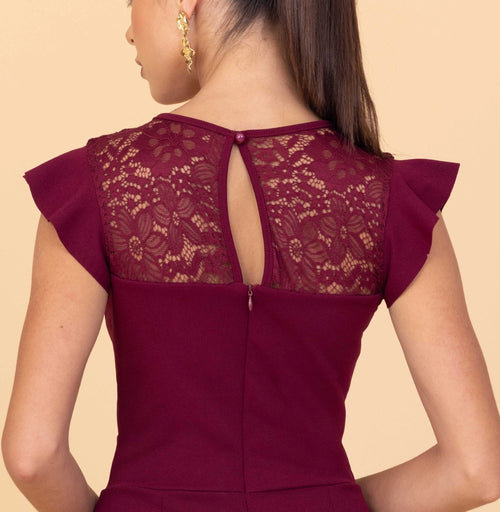 Der MEGAN Wine Playsuit verbindet moderne Weiblichkeit mit einer schlanken, schmeichelnden Passform. Es hat einen tiefen V-Ausschnitt und eine taillierte Silhouette und verfügt über weiche Rüschenärmel, die für Bewegung und Charme sorgen. Der Spitzeneinsatz auf der Rückseite sorgt für ein zartes, unerwartetes Detail, während die maßgeschneiderten Shorts und der definierte Bund für ein ausgewogenes, strukturiertes Finish sorgen. Dieser Playsuit eignet sich perfekt für Tagespläne, Freizeitausflüge und Sommerveranstaltungen und bietet Vielseitigkeit, ohne Kompromisse beim Stil einzugehen.