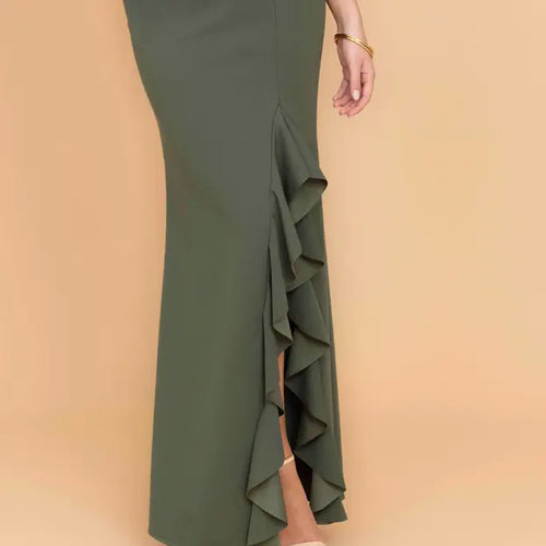 Mit ihrem gerüschten, geschlitzten Beindetail stechen Sie bei Ihrer nächsten Veranstaltung in MILLY hervor. Dieses One-Shoulder-Maxikleid mit Rüschen verleiht ihm eine atemberaubende Silhouette Maxikleid Design, das den Körper überfliegt und bis zum Boden reicht. Die One-Shoulder-Kleid Der Stil und der kunstvolle geschlitzte Rüschensaum machen sie zum perfekten Plus-One für alle Gelegenheiten, egal ob als Abschlusskleid oder ein Abendkleid.