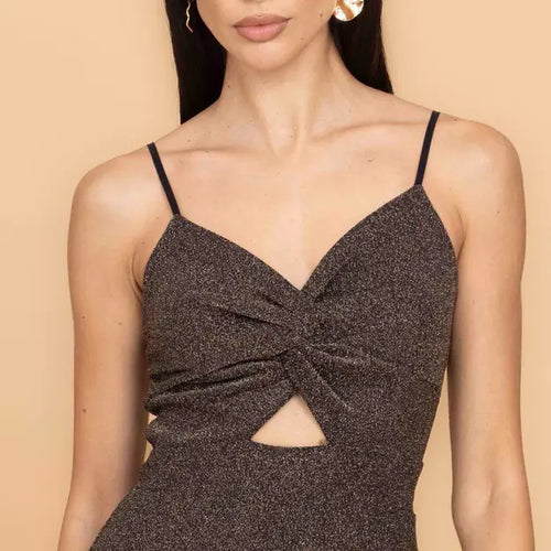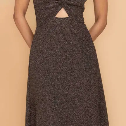 A vision in gold, AMELIA is a study in perfection. The elegant twist detail at the bodice creates a deep neckline and daring cut out, which is offset by the delicate straps. The waist narrows, shaping the silhouette, while the skirt of this maxi dress is full, creating movement with each step. Best worn when looking to dress to impress, this gold sleeveless maxi dress commands attention. Also available as a silver sleeveless maxi dress for those looking for cooler glitter tones this season.