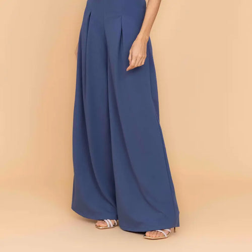 Sleek lines, clean cuts, and deep tones, our indigo blue belted jumpsuit, ASH, is a testament to timeless elegance and style. The square neckline creates a flattering décolletage, framed by the chunky straps to make a canvas for your favorite necklace. Cinched at the waist with a belt and metal buckle detail, the jumpsuit flares out into wide-leg, pleated pants. Designed in a deep indigo blue hue, this wide-leg jumpsuit pairs perfectly with nude heels and gold jewelry. ASH is also available as a black belted wide-leg jumpsuit.