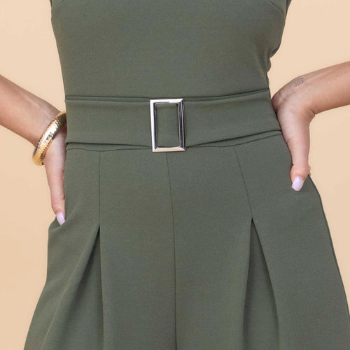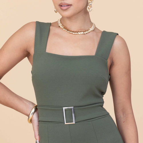 The petite ASH jumpsuit in light khaki is shaped by a square neck bodice and finished with a belted waist that accentuates the silhouette. The wide leg design adds a relaxed feel, making it a perfect choice for any occasion. Pair ASH with sandals for a laid-back look or dress it up with heels for a dinner date. The stunning khaki tone allows for easy styling with accessories, making it a staple in your wardrobe.