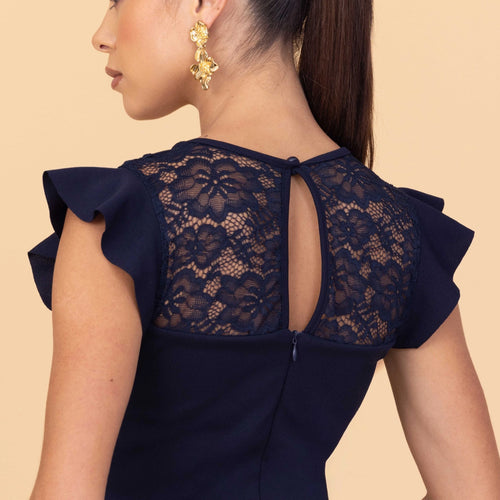 The CLAUDIA Navy Maxi Dress brings effortless elegance to every occasion. Its fitted silhouette is balanced by a soft V‑neckline, creating a refined shape that flatters with ease. Ruffle sleeves introduce a feminine touch, while the side slit in the skirt adds movement and a hint of drama as you walk. Designed with a graceful maxi length, it drapes beautifully for both daytime events and evening plans. Style it with statement earrings to highlight the neckline and elevate the look with minimal effort.