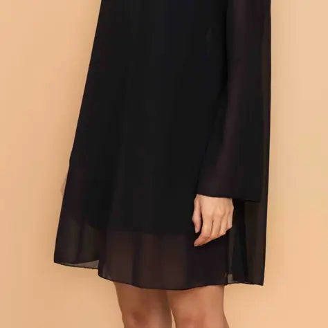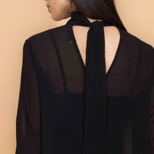 Crafted in an inky black hue, add FELICITY to your wishlist this season. The coquette-inspired bow tie at the back of the neck adds a touch of playful drama, ensuring all eyes are on you even when your back is turned, while the high neck and a-line style exude elegance and allow your legs to do the talking.