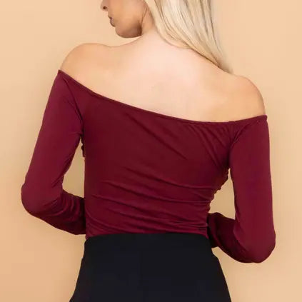 Made for candlelit dinners and evening soirées, the HALLE is an autumn/winter wardrobe staple. With her crossover neckline, fitted shape, and long sleeves, all wrapped up in a sumptuous red wine color, this bodysuit makes the perfect going out top for colder evenings. Dressed up or dressed down, this long-sleeve bodysuit with an off-the-shoulder cut is set to be your muse this season. For a short-sleeve alternative, consider our sumptuous brown off-the-shoulder bodysuit, HALLIE.
