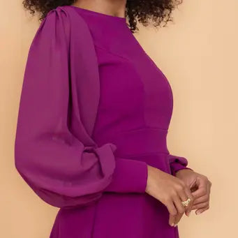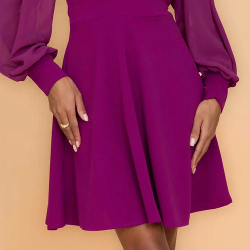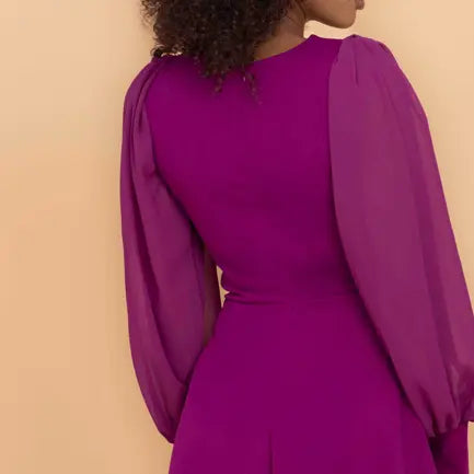 A true occasionwear staple, KAT is feminine with timeless appeal. In a striking plum shade with sleeves crafted from our premium chiffon, this dress is made for those events that just call for a touch of drama. In a skater dress style with floaty, long sleeves, she’s a classic mini dress with a twist. From day drinks to date nights, in KAT, you’ll always exude elegance.