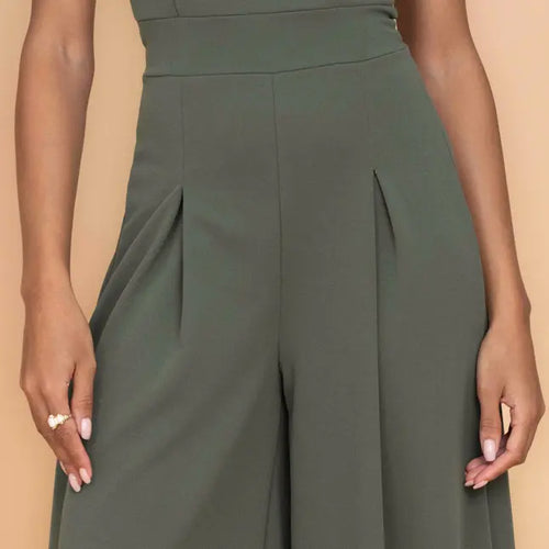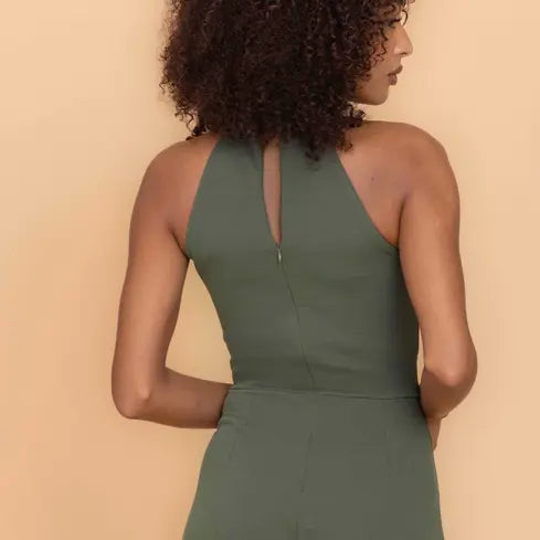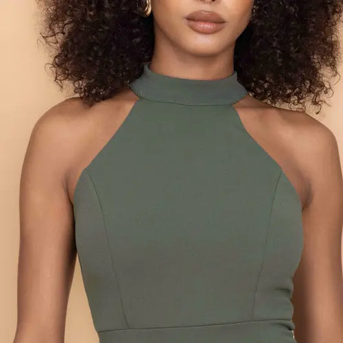 Architecture meets allure in this dark khaki wide-leg jumpsuit. LEILA combines the fitted structure of a halter-neck bodice with the airy flair of wide-leg pants. Crafted for movement and a flattering silhouette, our khaki wide-leg jumpsuit looks right at home on the dance floor, at a cocktail party, or at a formal dinner. Style with a sleek ponytail and your favorite pair of court heels to look effortlessly chic. Discover LEILA as a halter neck wide leg jumpsuit in dark teal for a jewel-toned alternative.
