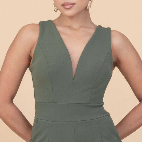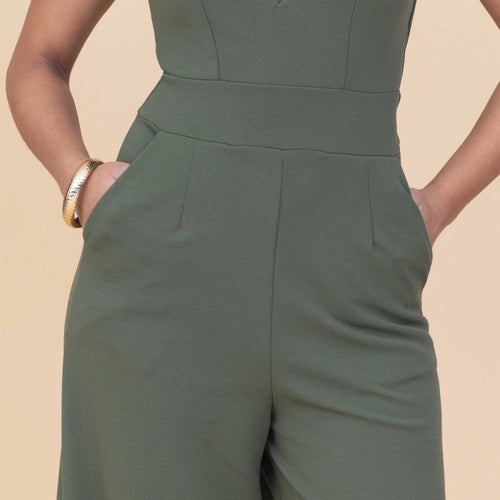 The LIVIA Light Khaki Jumpsuit in Petite blends relaxed elegance with everyday ease. Its deep V‑neckline and fitted high waist create a flattering silhouette, while the wide‑leg design adds fluid movement and comfort. Practical pockets bring a balance of style and functionality, making this jumpsuit a go‑to choice. Perfect for casual days, summer outings, or relaxed evenings, it transitions effortlessly from day to night. Pair it with sandals for a laid‑back look or elevate it with heels for dinner plans.
