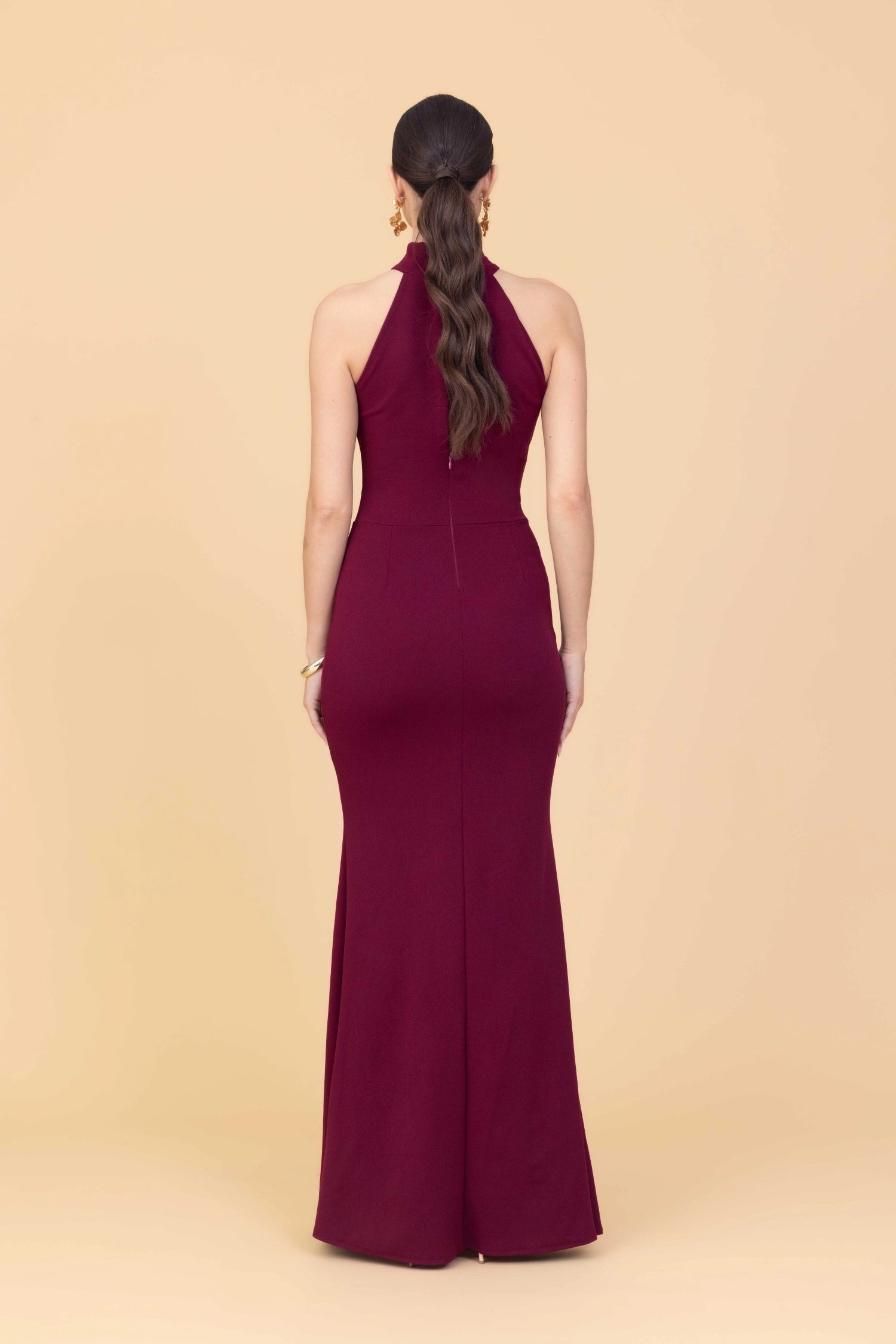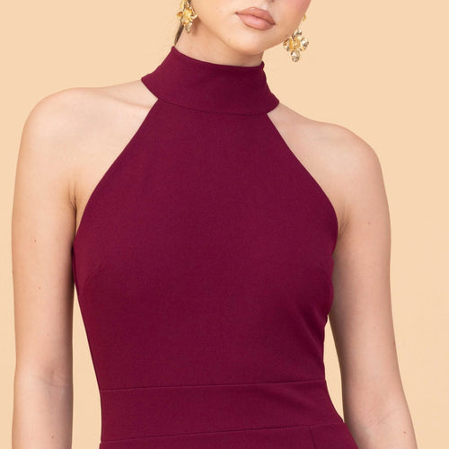 The SARA Wine Maxi Dress Tall is crafted with a sleek bodycon silhouette that highlights the figure beautifully. The high halter neckline creates a clean, contemporary shape, while the mid‑length slit in the skirt adds a subtle touch of drama and ease of movement. Its rich wine hue enhances the dress’s refined appeal, making it a standout option for a range of occasions. Perfect for date nights and evening plans, this maxi transitions effortlessly from formal events to more relaxed gatherings.