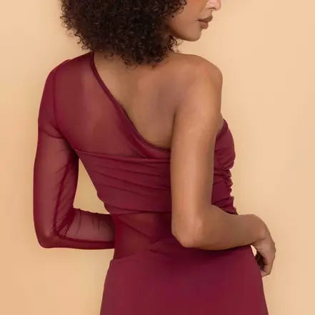 A true statement piece, the SOLADA Wine Maxi Dress was made to break the rules. Featuring a striking contrast mesh cut-out and one-sleeve detail, this maxi dress bends the boundaries with its asymmetrical design. Combined with its floor-sweeping length, our one-sleeve maxi dress is destined to mark the occasion, whether you’re looking for an evening dress or black tie outfit.