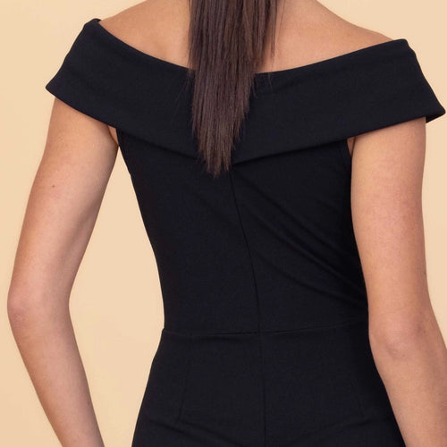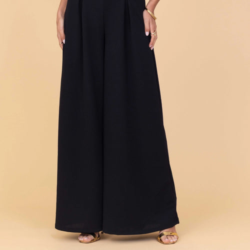The ZARA Black Jumpsuit combines timeless elegance with contemporary structure. Designed with a fitted bodice and an off‑shoulder neckline, it highlights the shoulders beautifully while maintaining a sleek, refined shape. Soft pleating flows into a wide‑leg silhouette, creating graceful movement and a flattering, elongated look. The classic black hue enhances its versatility, making it an effortless choice for a range of occasions. Perfect for cocktail gatherings and evening events, this jumpsuit offers a sophisticated yet relaxed fit that moves with ease.